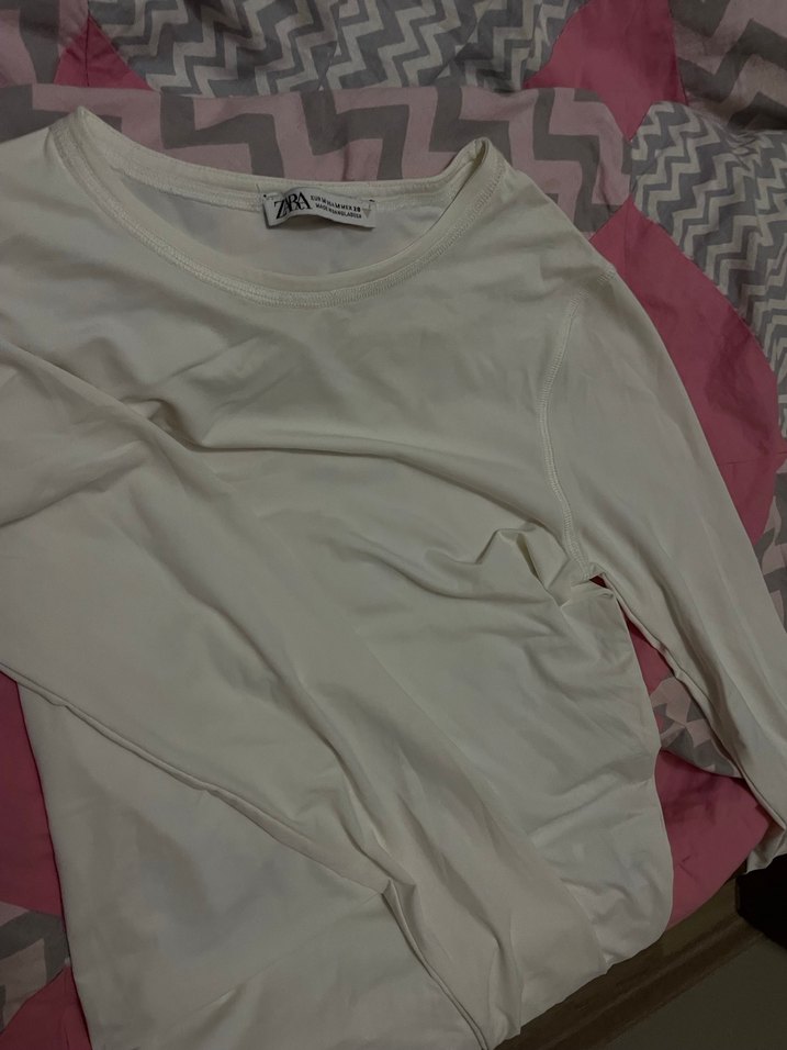 zara uzun kollu ve bisiklet yakalı,günlük kullanıma uygun dar kesim crop M beden ama s giyen birisine de olur üstte yapısıyor