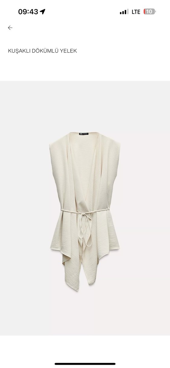 Zara Beyaz renkte,, drapeli ve V yaka kesime sahip, kemer detaylı, midi boy kadın yelek. Hiç kullanılmadı M - L beden için uygun