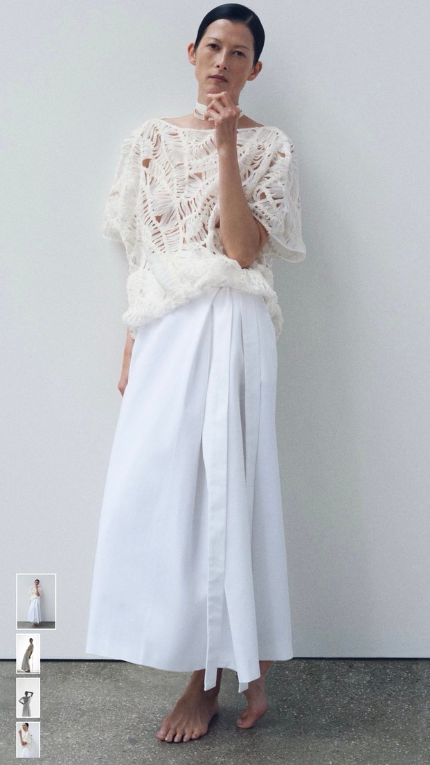 Önden baglamalı ayarlanabilir pareo tipi kapama beyaz etek. Sıfır üründür. Orta beldir. Düşük ve yüksek değildir.