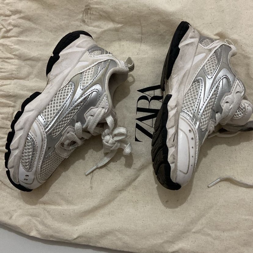 Beyaz ve gri baskılı sokak stili spor ayakkabılar, kauçuk taban spor kullanımına uygun. 25 numara etiket ama kalıp bir numara küçüktür o uzunu 24 işaretledim önündr hafif soyulma mevcuttur