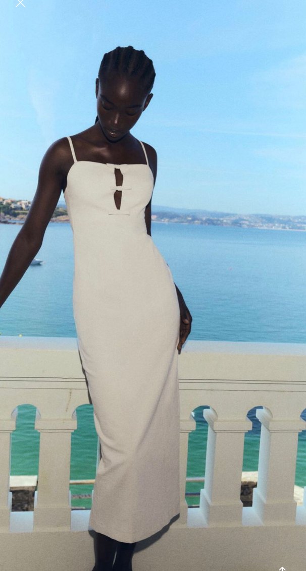 Zara Beyaz İnce Askılı Uzun Kadın Elbise
