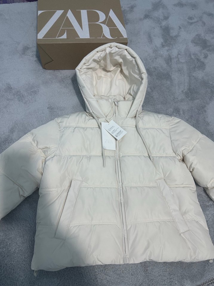 ZARA Beyaz Kapüşonlu Kadın Kışlık Mont