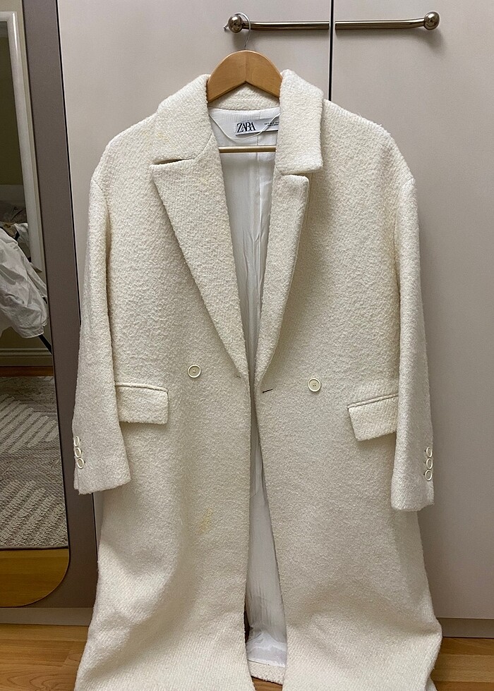 Sadece 2 kere giyildi dolabımda askıda üzerinde bekleme sonucu azıcık sarı leke oluştu o nedenle satıyorum