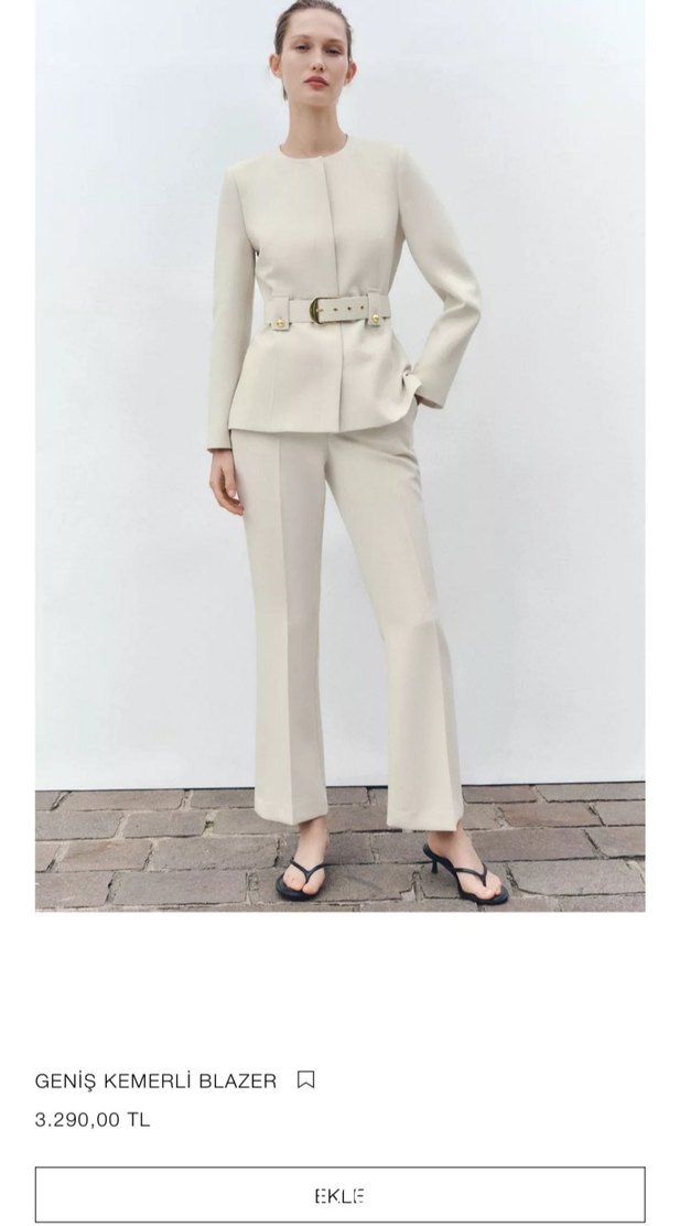 Zara Beyaz Kemerli Blazer Takım Viral