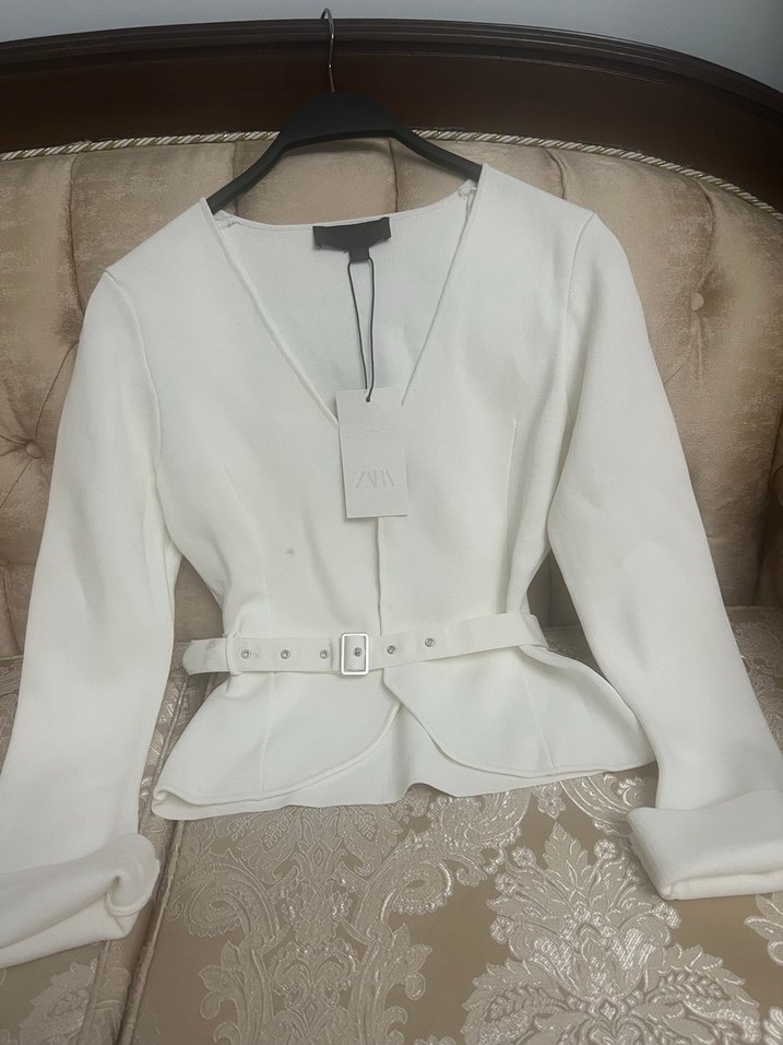 Zara beyaz Kemerli V Yakalı Kadın Ceket