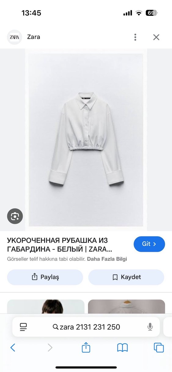 Zara Beyaz Kısa Kesim Uzun Kollu Gömlek
