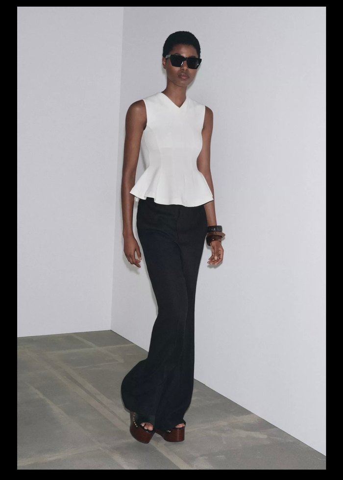 ZARA BEYAZ KOLSUZ PEPLUM İNTERLOK TOP