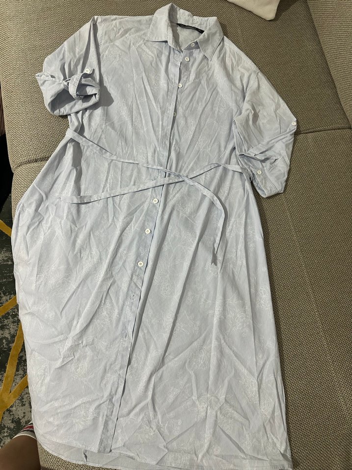 Mavi ve beyaz tonlarda, elbise yaz için uygun ve çok rahattır,kolları ayarlanabilir,gömlek tarzında bir elbise,belinde ince kemeri mevcuttur,çiçek desenli,cepleri de var