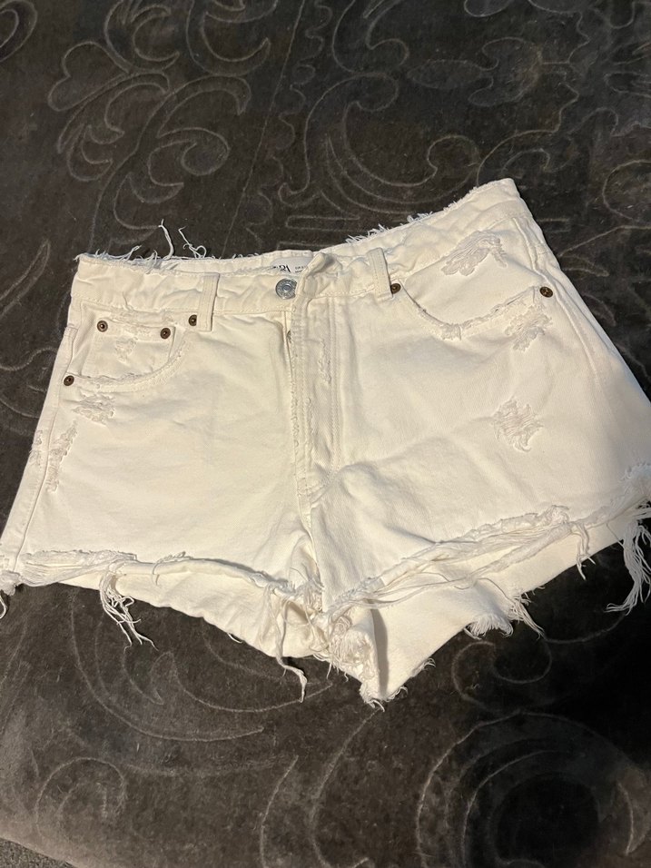 Zara Beyaz Mini Denim Şort, Salaş Kesim