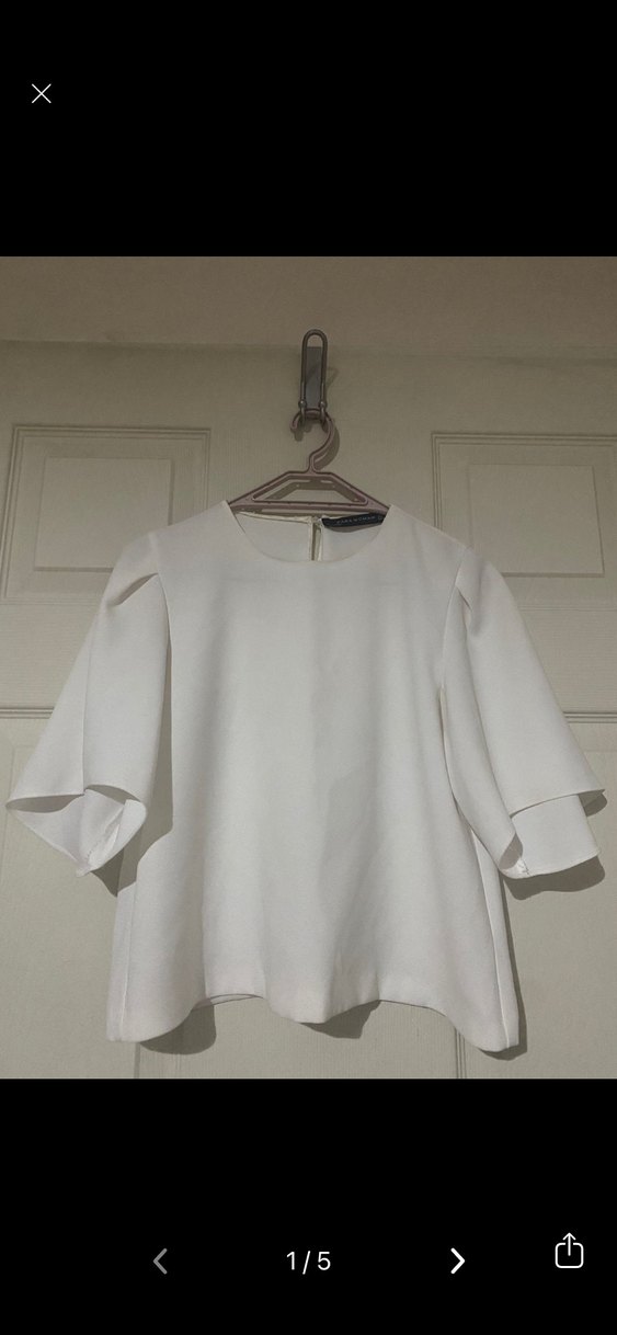 Zara Beyaz Minimalist Kısa Kollu Bluz