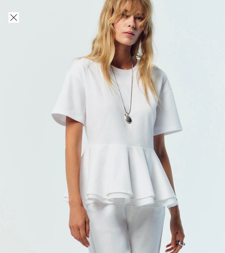 Zara Beyaz Pamuklu Kısa Kollu volanlı bluz