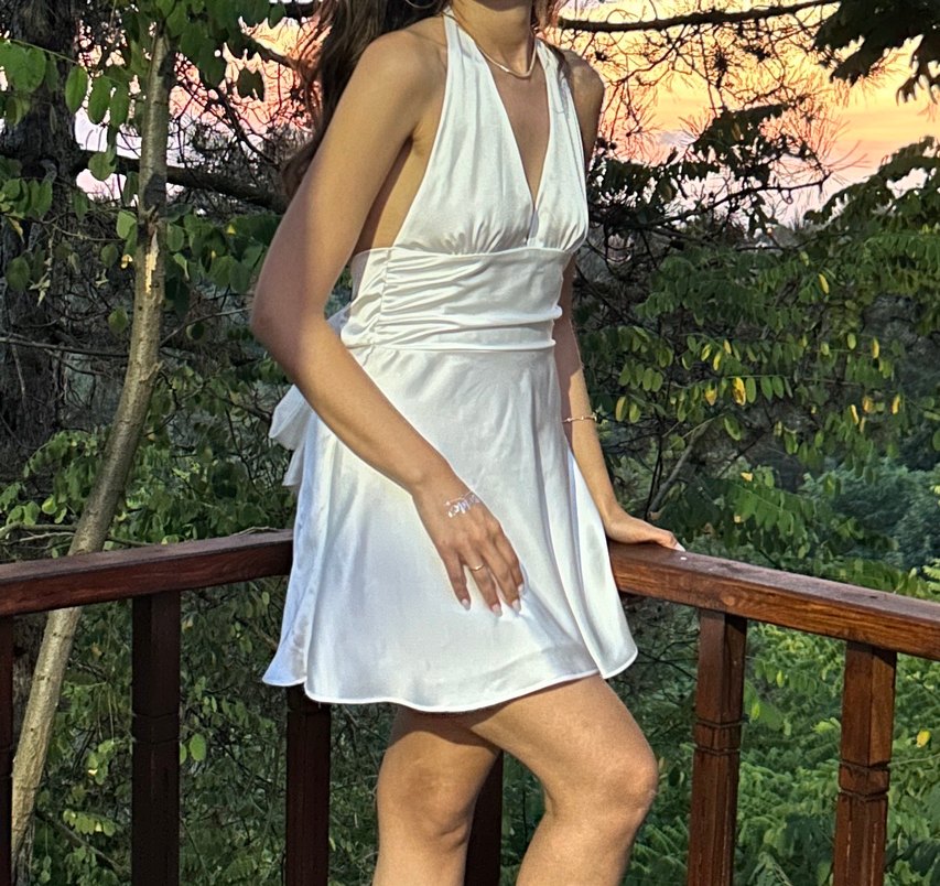 Sadece bir kez bekarlığa vedamda giydiğim beyaz saten elbise. Kuru temizlemesi yapıldı ve lekesizdir,ütü ister. Zamansız sade ve şık. S beden