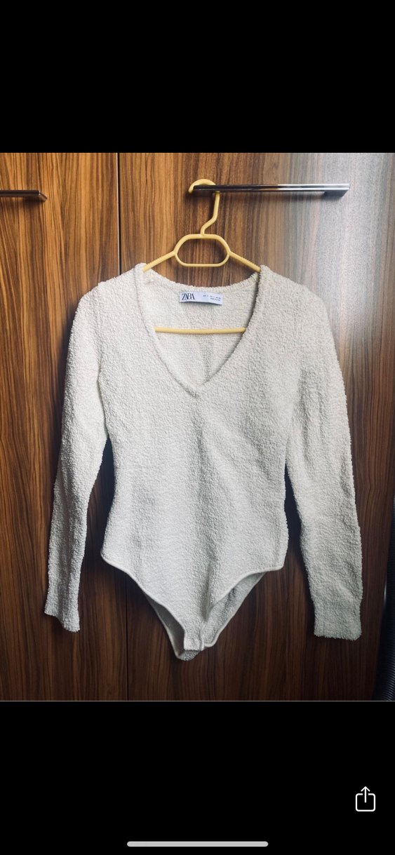 Zara Beyaz V Yakalı Uzun Kollu Triko Bluz