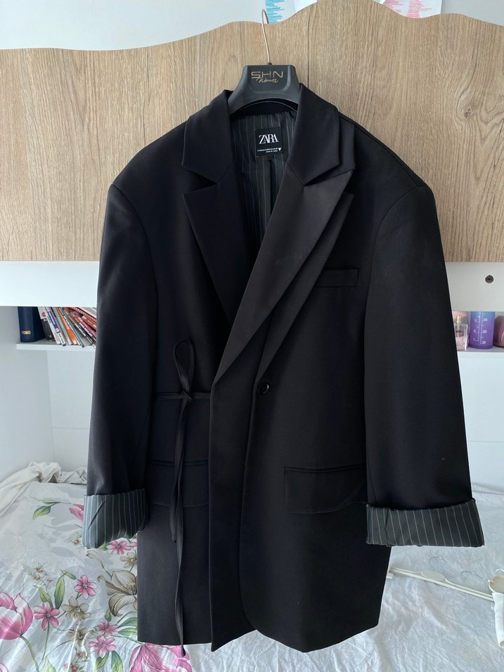Modern tasarımlı zara ceket yaka kısmında saten detaylı bir kez giyildi xs-s