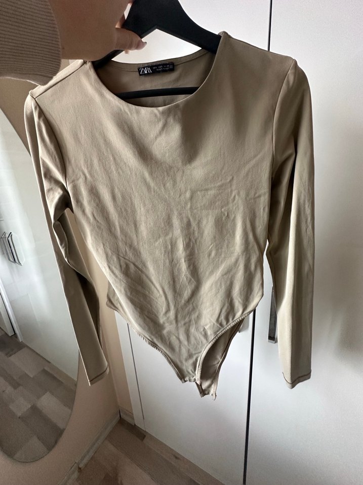Bej renkli, uzun kollu ve bisiklet yaka, yumuşak keten kumaştan yapılmış dar kesim kadın bluz. Minimalist tarzıyla günlük kullanıma uygundur, zahmetsiz şıklık sunar.