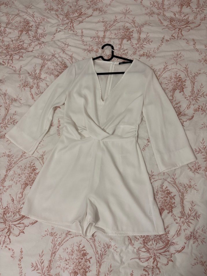 Zara Bohem Beyaz V Yakalı Mini Tulum
