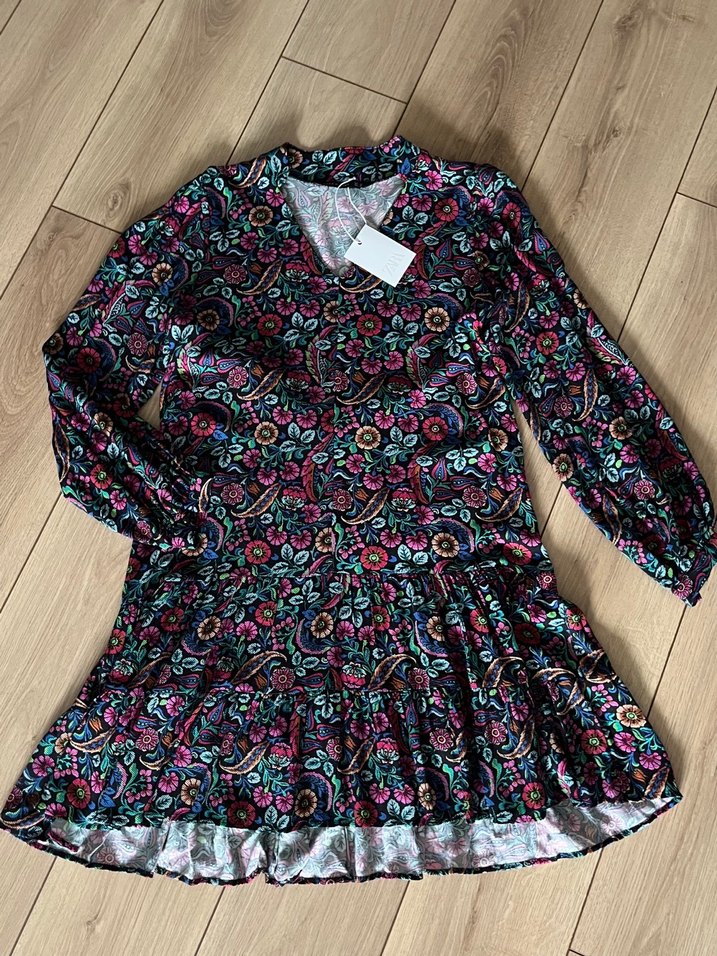 ZARA, M beden, önden arkaya uzayan volanlı eteği ile Bohem Elbise… İki kol arası 50cm. Ön Boy 92cm. Arka Boy 96cm. Bol kesim..