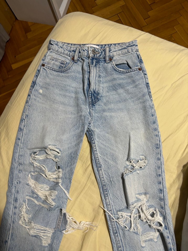 zara Bol Kesim Yırtık Detaylı Denim Pantolon