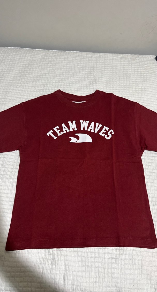 Kısa kollu, bisiklet yaka ve bol kesim olan bu erkek tişörtü, yumuşak ve sıcak fleece kumaştan yapılmıştır. Koyu bordo renkte, baskılı 'TEAM WAVES' deseniyle sokak tarzına uygundur. 9/10 yaş çok iyi durumda