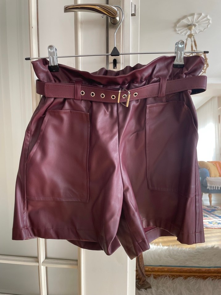 Zara bordo deri şort