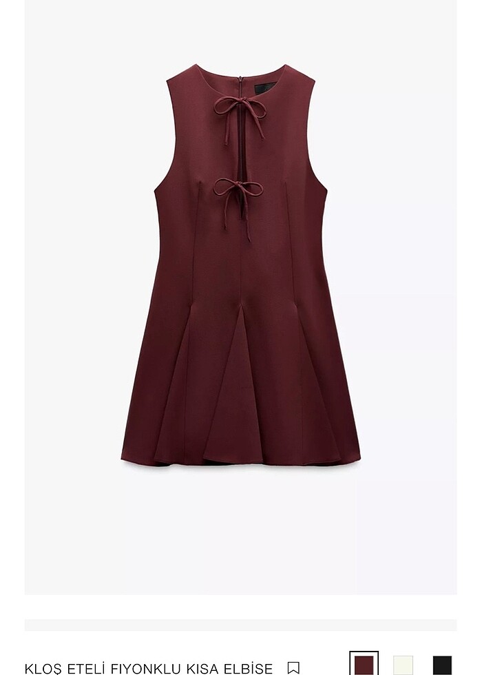 Zara Bordo Fiyonklu kısa elbise yalnızca 1 kere giyilmiştir