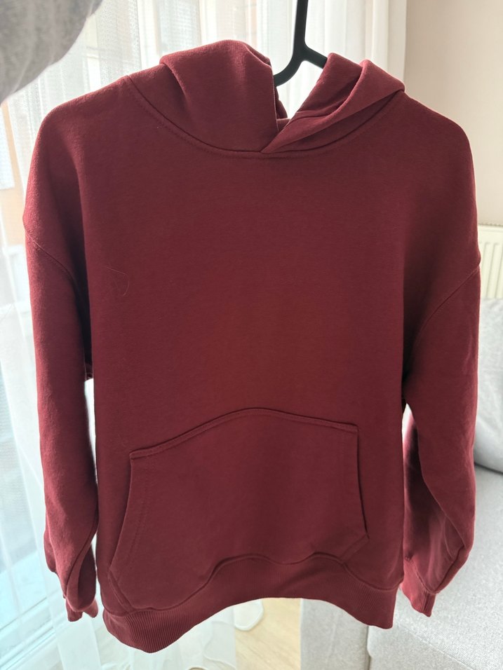 Kapusonlu bordo sweatshirt. 11-12 yas. Xxs ve xs bedenler icin de uygun.