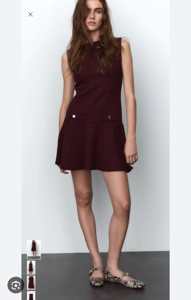 #zara #Bordo Yüksek Yakalı Kolsuz Mini #Elbise