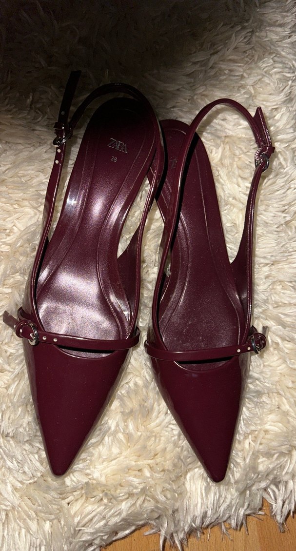 Zara Burgundy Deri Tokalı İnce Topuklu Kadın Ayakkabı