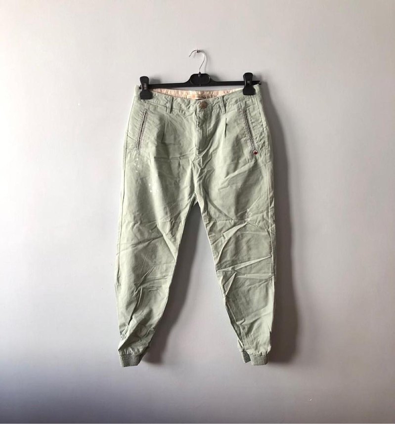 Zara açık çağla yeşili chino / jogger model pantolon. Kırmızı kalp düğme detaylı, önü eskitmeli ve boya efektli, paçaları lastikli, önü arkası cepli. Bel 36, boy 91 cm. 34 beden fakat geniş kalıp. Bir kez bile giyilmedi temiz sorunsuz. sadece düğmesi biraz eskimiş bkz 2. Foto. ✨ürün fotoğraflarda gözüken durumda gönderilir. ✨ Maalesef ütülü gönderme imkanım yok. ✨Tüm ürünlerimi dürüstçe ve detaylıca tarif ediyorum. Kargolamadan önce ürünü tekrar kontrol ediyor, daha önce gözümden kaçıp da ilanda bahsetmemiş olduğum bir husus olduğunu fark ettiğimde hemen alıcıyı bilgilendirip isterse siparişi iptal ediyorum. ✨İADE KABUL EDEMİYORUM, bu yüzden lütfen satıştan önce aklınızdaki tüm soruları sorunuz✨