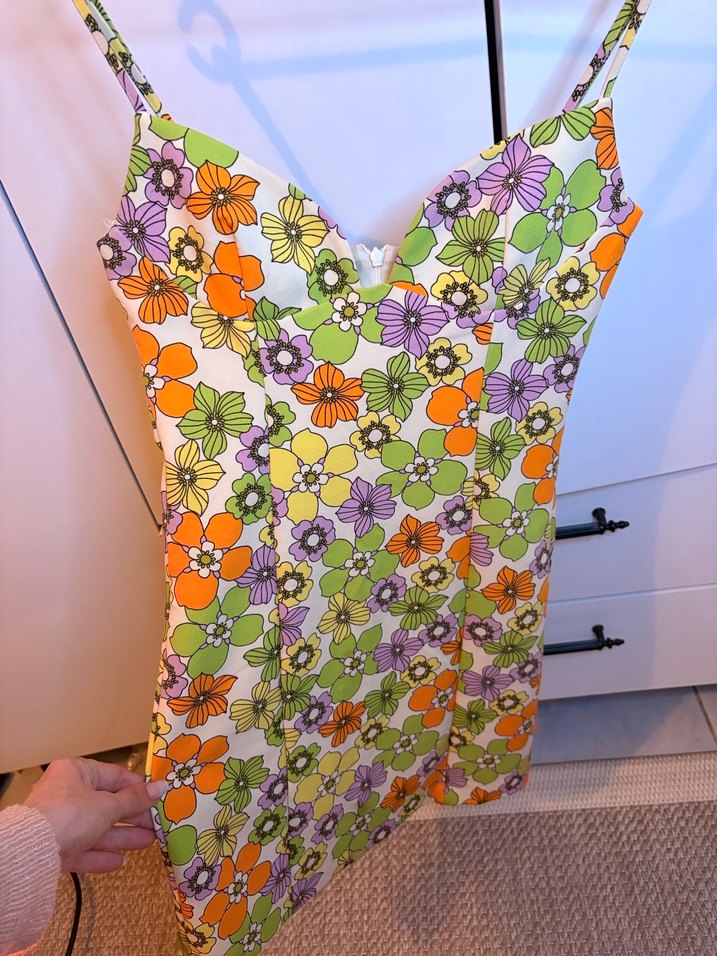 Zara marka, retro çiçek desenli, askılı elbise. Vücuda oturan kalıbı ve tok kumaşı sayesinde çok şık durur. Yaz & bahar ayları için ideal, hem günlük hem özel kombinlere uygun. Detaylar: • Marka: Zara • Beden: S (etiketli) • Renk/Desen: Yeşil – mor – turuncu çiçek desenli • Askılı, göğüs kısmı kalıplı • Arkadan fermuarlı • Astarlı, iç göstermez Durum: Çok iyi durumda. Herhangi bir leke, yıpranma veya deformasyon yok. Hiç giymedim. Hızlı kargo / özenli paketleme Sorularınız için mesaj atabilirsiniz
