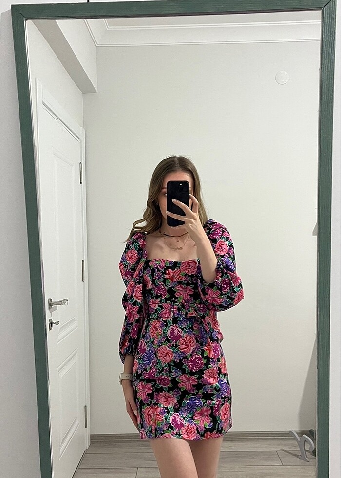 ZARA ÇİÇEK DESENLİ KEMERLİ ELBİSE