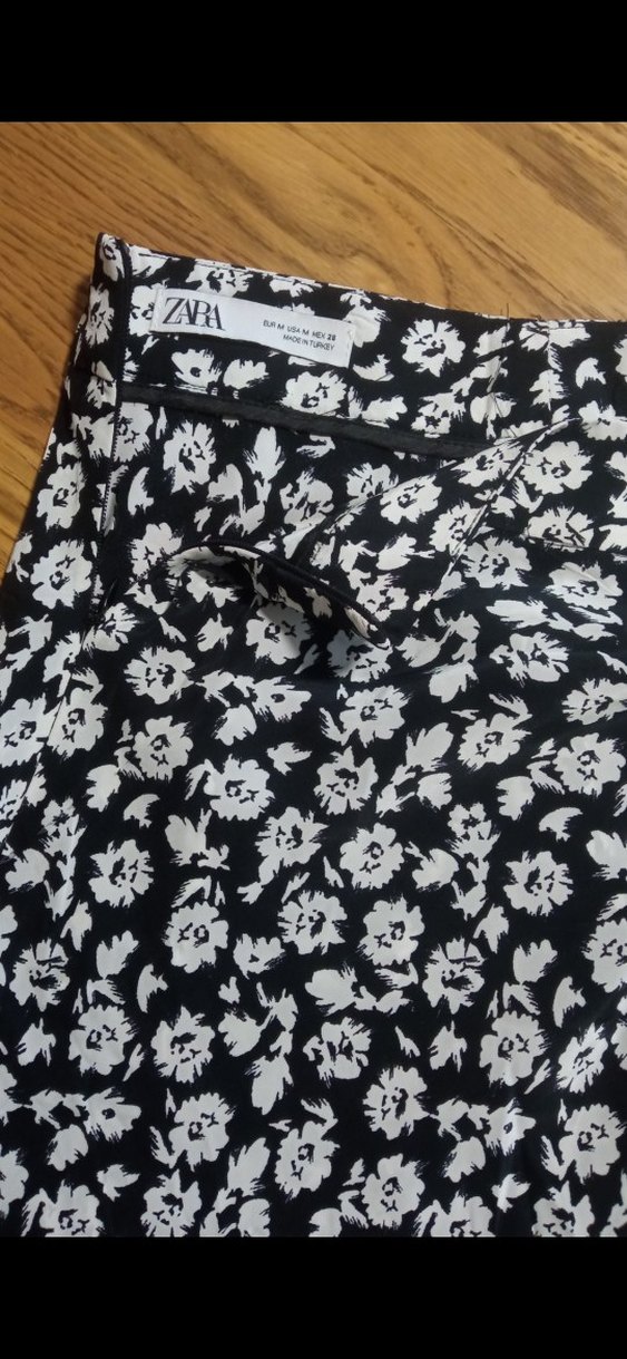 Zara marka, m beden, siyah-beyaz çiçek desenli bohem uzun midi etek. Tril tril yazlık bir kumaşı vardır, yandan fermuarlı, astarı yok. Bel:36 cm. Boyu: 93 cm. Bir kere kullanıldı, yepyeni ve temizdir. M beden ama kalıbı dar olduğu için s bedene daha uygun olur.