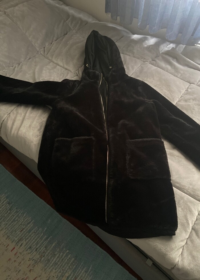 Zara marka çift taraflı mont iç kısmı peluş s beden Belini ayarlamak için lastik vardır