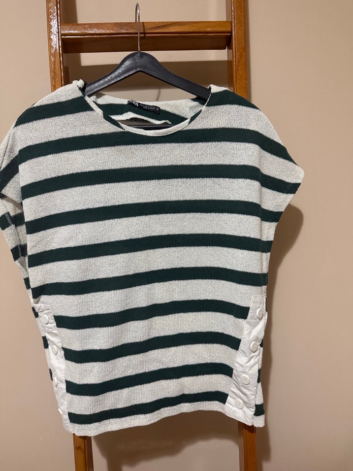Zara Çizgili Kısa Kollu Kadın Triko Süveter
