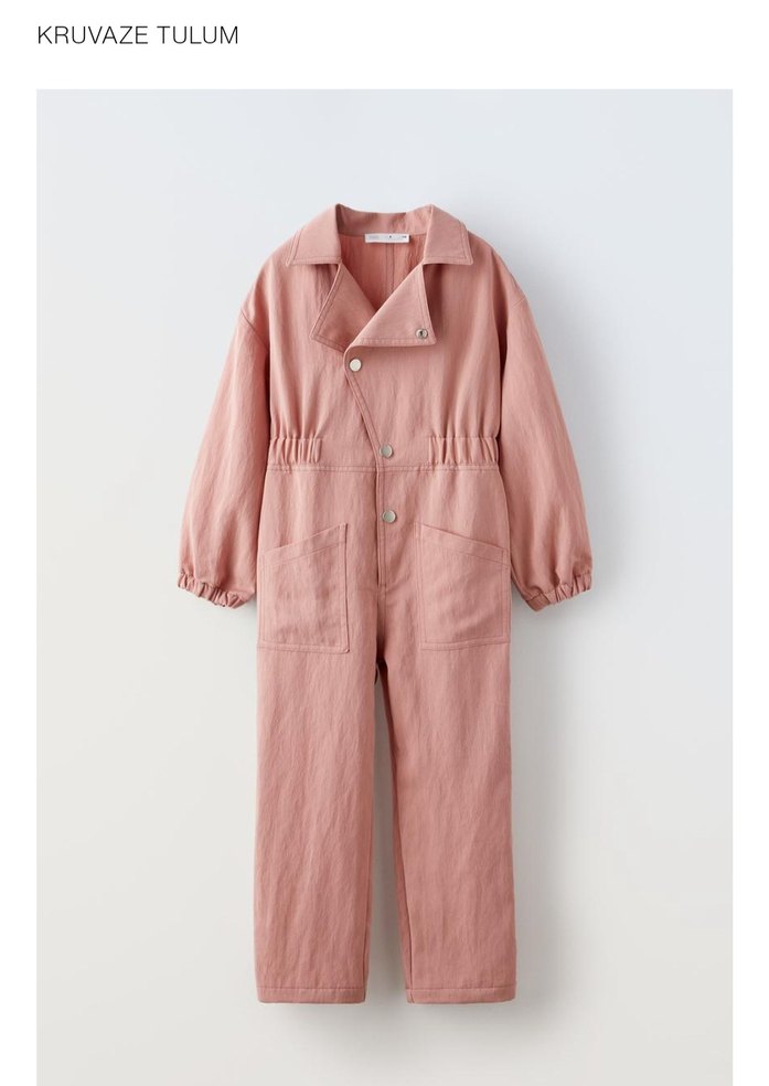 Düğmeli, kruvaze yakalı, uzun kollu, bol kesim cocuk tulum. Bel kısmı lastikli ve büyük ceplidir, günlük kullanım için uygundur.