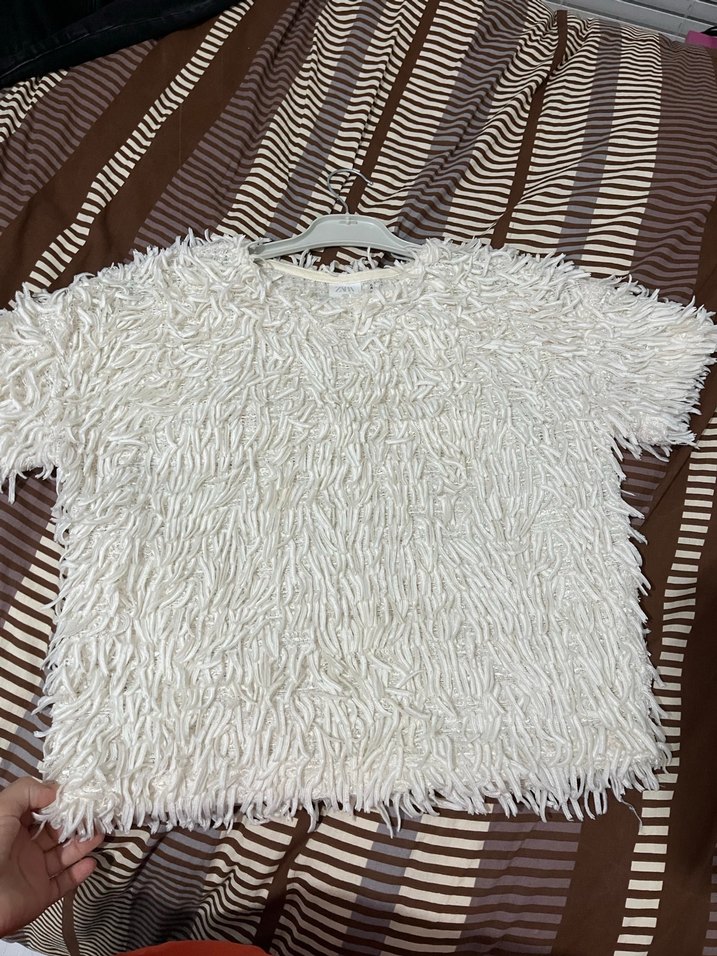 Zara çocuk 11-12 yaş Kısa Kollu Beyaz Yünlü Kadın Kazak