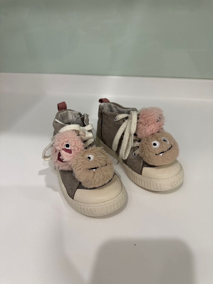 Zara Kids Peluş Süslemeli Sneaker Numara: 25 Renk: Bej / Kahverengi tonlarında, ön kısmında peluş figür detayları ile çok eğlenceli bir model. Yan fermuarı ve bağcıklı tasarımı ile hem şık hem rahat. Temiz ve rahat bir şekilde giyilebilir, sadece tabanda hafif kullanım izi mevcut.