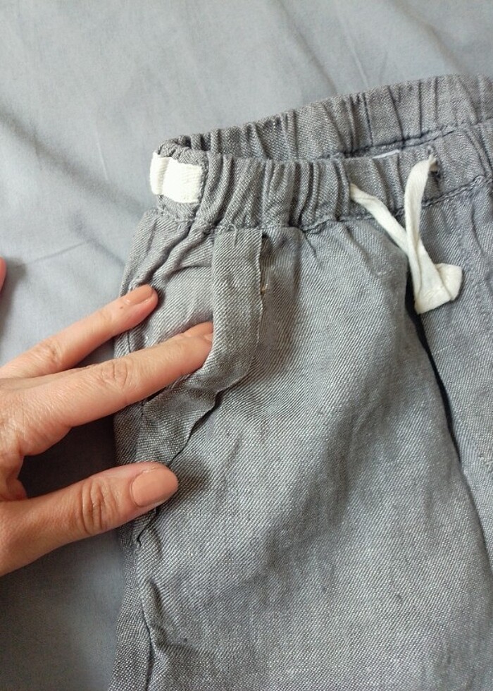 Çok az kullanılmış tertemiz keten Zara çocuk. Bel ölçüsü 22-30 cm arası lastikli ve ipli olduğu için esneme paylı. Boyu belden bileğe kadar 57 cm. Cepleri var. Hem çok rahat hem çok şık.
