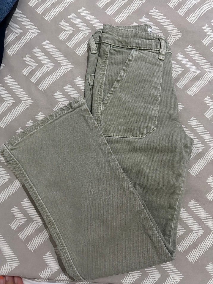 yeşil renginde ve kot kumaşındadır. 7 yaş. herhangi bir defosu yoktur. kenarlarında cep detayı vardır.