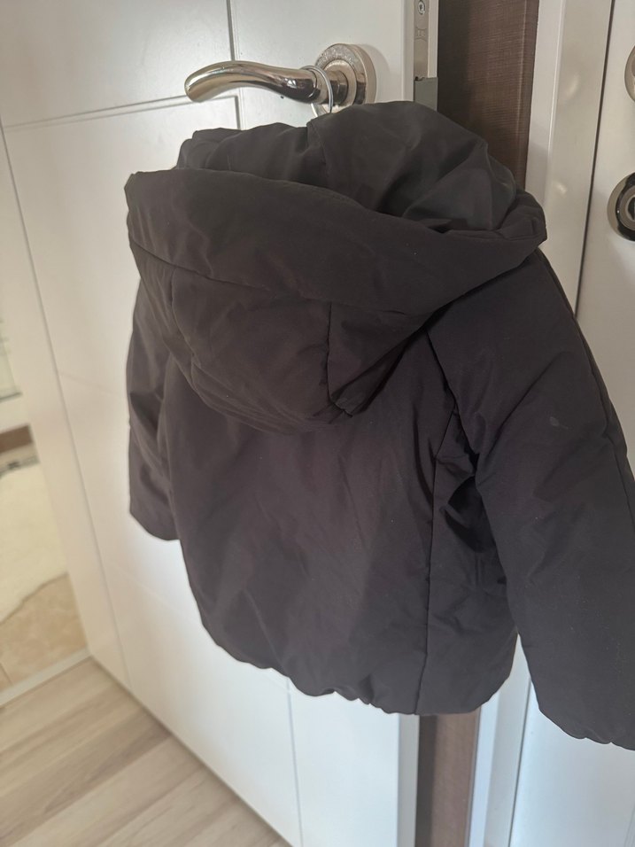 Temiz sıkıntısız. Bu siyah, kısa kesim, yüksek yakalı kışlık mont fermuarlı ve uzun kolludur. Yumuşak ve sıcak kumaşıyla dış mekan için rahatlık sağlar. ❄️