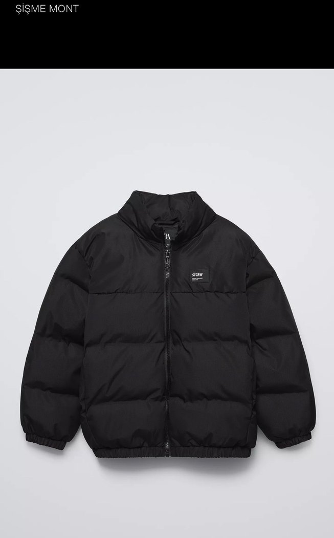 Yumuşak ve sıcak kumaştan, yüksek yakalı ve uzun kollu, bol kesim siyah çocuk mont. Günlük sokak stili için sade tasarım. Etiketli mağazadan alınmıştır