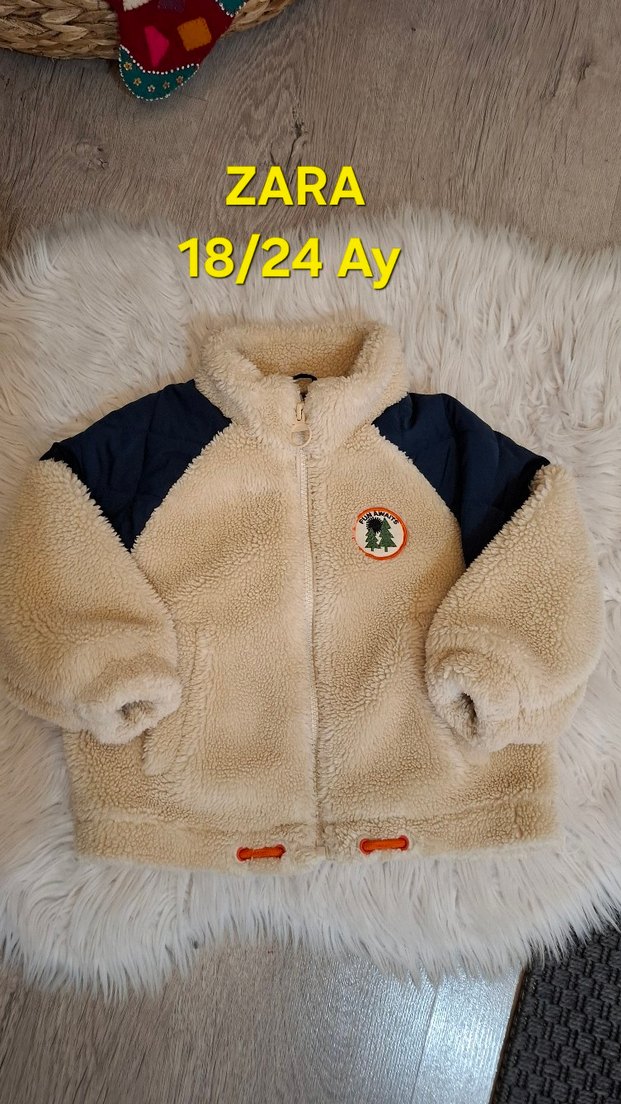 Zara marka, 18-24 ay çocuk için peluş kumaştan,bol kesim mont. Bir kez giyilmiş,Yrni ayarında tertemiz,kusursuzdur.Streetwear tarzında, yuvarlak yakalı.Sicacik tutar.