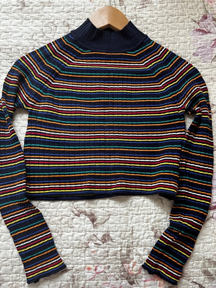 Zara Çok Renkli Çizgili crop kazak
