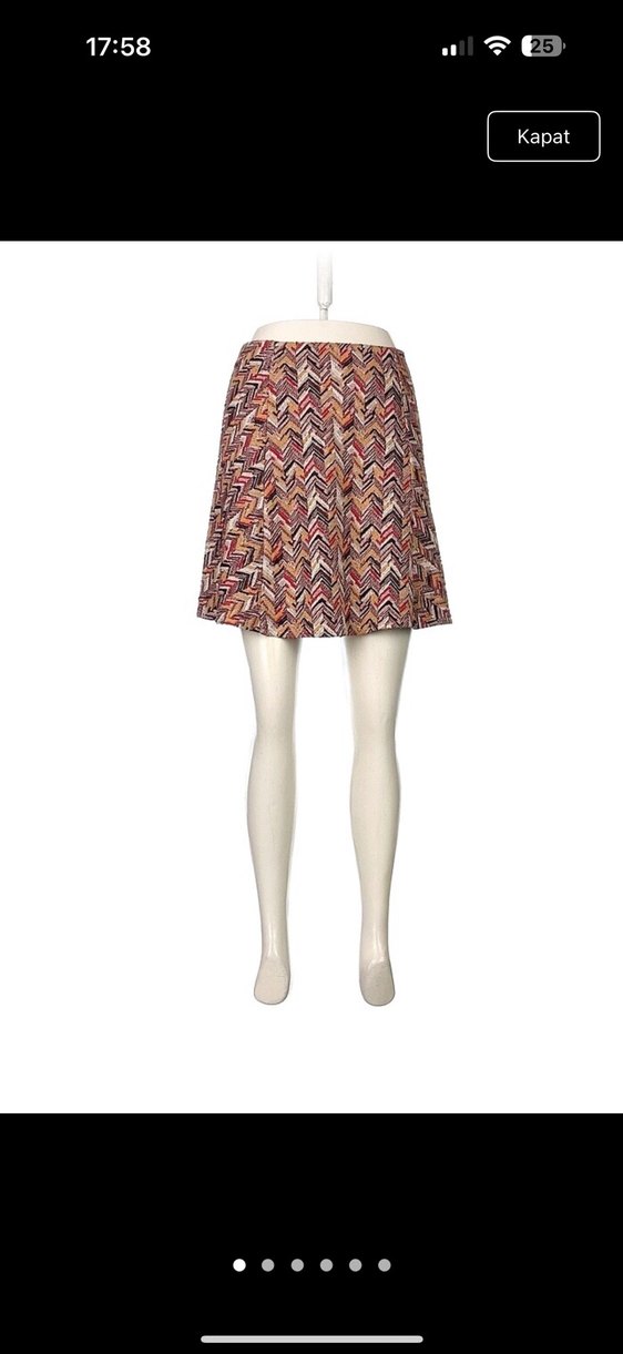Sentetik kumaştan yapılmış, bol kesim, açık renk çok renkli batik desenli mini etek.