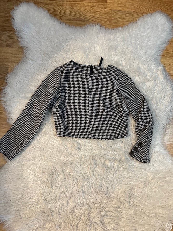 Zara Crop Düğmeli Gri Kareli Kadın Bluz