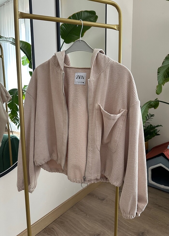 Çok az kullanıldı çok iyi durumda herhangi bir deformasyonu mevcut değildir. Şönil kumaş önde cep detaylı fermuarlı beli ve kol ucu lastiklidir. Belindeki lastik büzgü ayarlanabilir. Kalıbı geniştir.