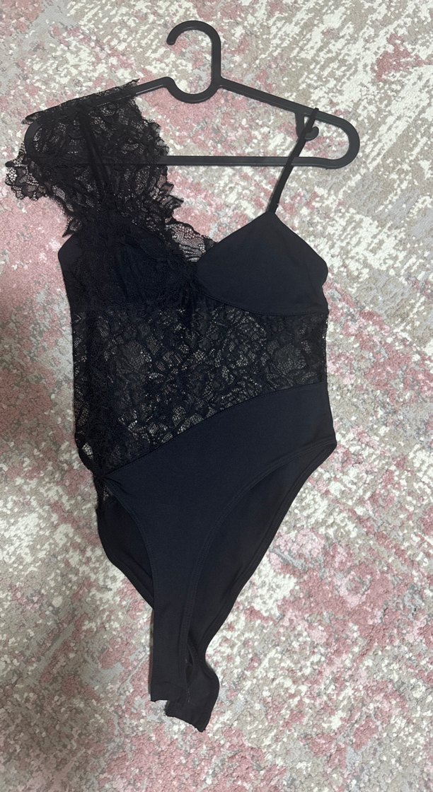 Hiç giyilmedi.Dantel detaylı, askılı kollu, siyah gotik tarzda, midi uzunlukta, vücuda oturan bir mayo. Parti için uygundur.