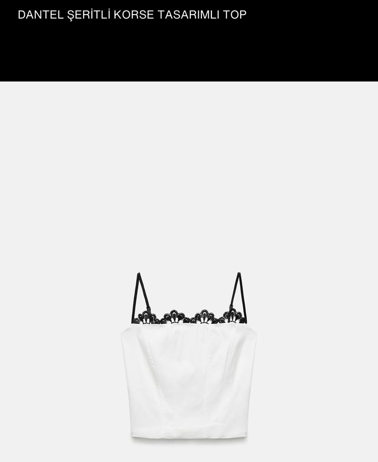 Zara Dantelli Şeritli Beyaz Top