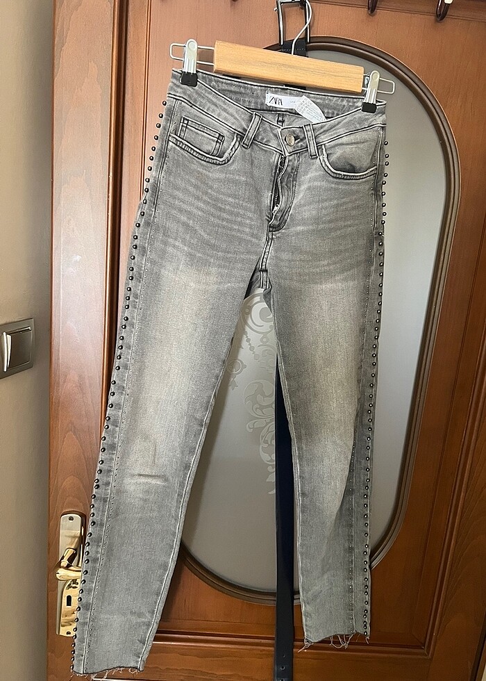 Dar paçalı kot pantolon ön ve arkasında cepleri vardır iki tarafında yanlarında boncukları vardır