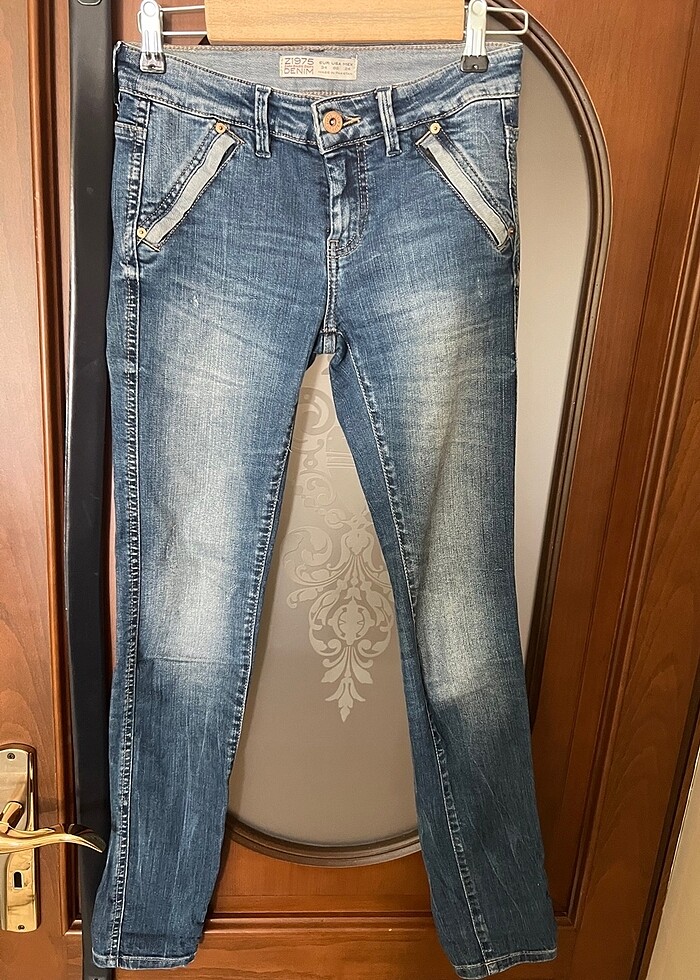 Dar paçalı kot pantolon önde gizli cepleri vardı arkasında cepler bulunmaktadır